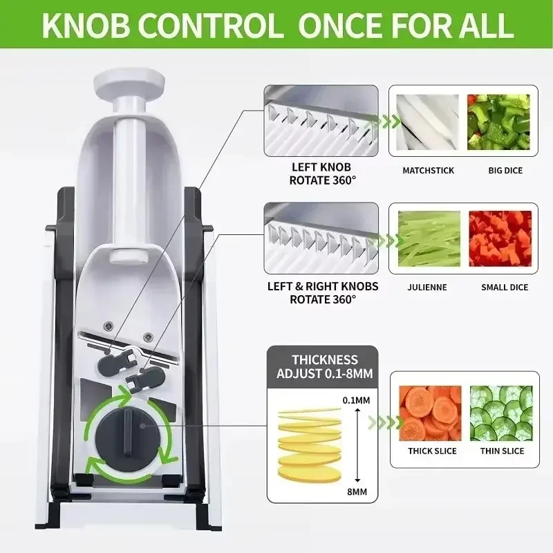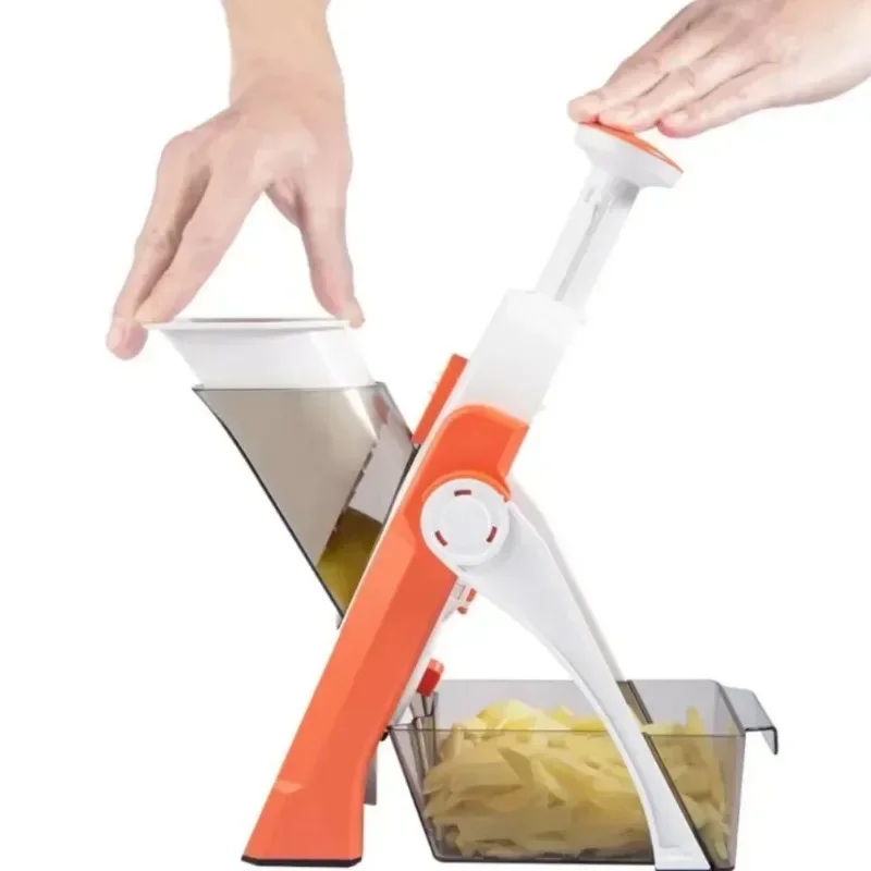 Este equipamento multifuncional oferece cinco diferentes funções que facilitam o corte, fatiamento, raspagem e muito mais, ideal para legumes, frutas e outros ingredientes. Com design robusto e lâminas afiadas de alta durabilidade, ele garante cortes precisos, uniformes e rápidos, otimizando seu tempo na cozinha.